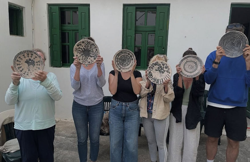 After the hike, we visit the village of Myrsini, where we meet local potter Nikos at his workshop. There, guests actively participate in creating and firing their own ceramic piece using the traditional and visually striking Raku technique.