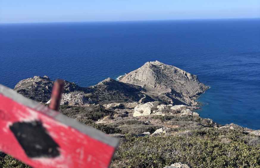 We enter the path and encounter the wild beauty of the Aforismenos Cape, where the rocks are tamed by the waves of the wild sea. The north wind on our faces and the sensation of nature's elements overwhelm us.